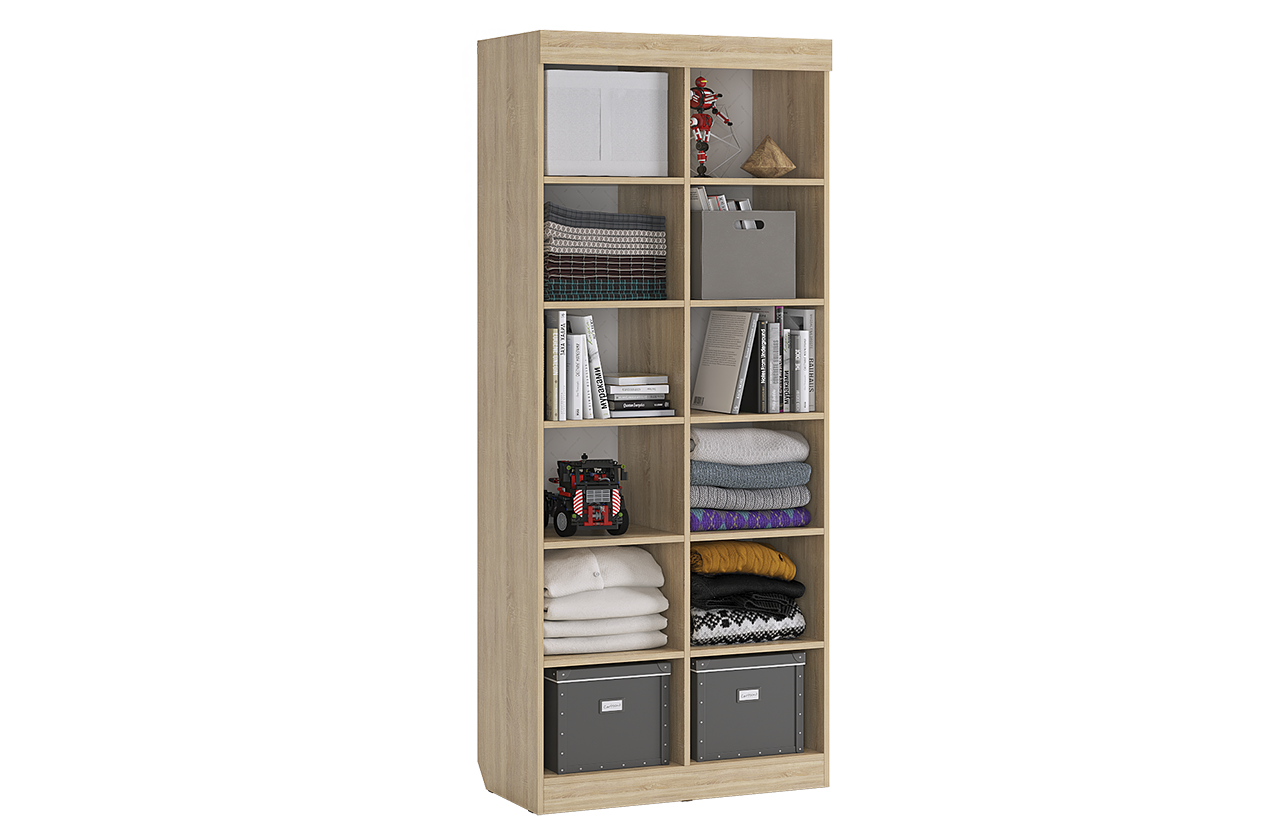 Состоит из 6-ти открытых ниш и 3-х закрытых. Стеллаж идеально подойдет для книг, игрушек и мелочей. Эффектный принтерный рисунок на фасадах выдержан в общем стилистическом решении. Рисунок устойчив к истиранию и ультрафиолету.