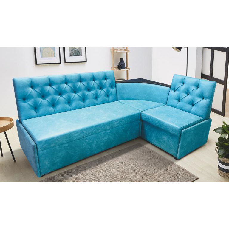 Описание: Модульная мебель предназначена для кухонных помещений. Стандартная комплектация является универсальной и может собираться в домашних условиях, на любую сторону, без применения инструментов. Ящик для хранения вещей. Раскладывается в спальное место, где обивка выполнена из основной ткани. Полка ЛДСП.